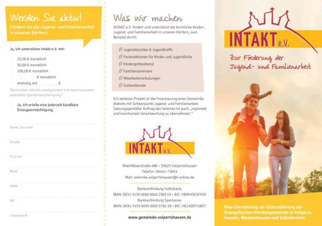 Der Intakt e.V. Flyer liegt in der Kirchen und an weiteren Auslegestellen zur Mitnahme bereit und kann natürlich auch als PDF-Datei heruntergeladen werden.